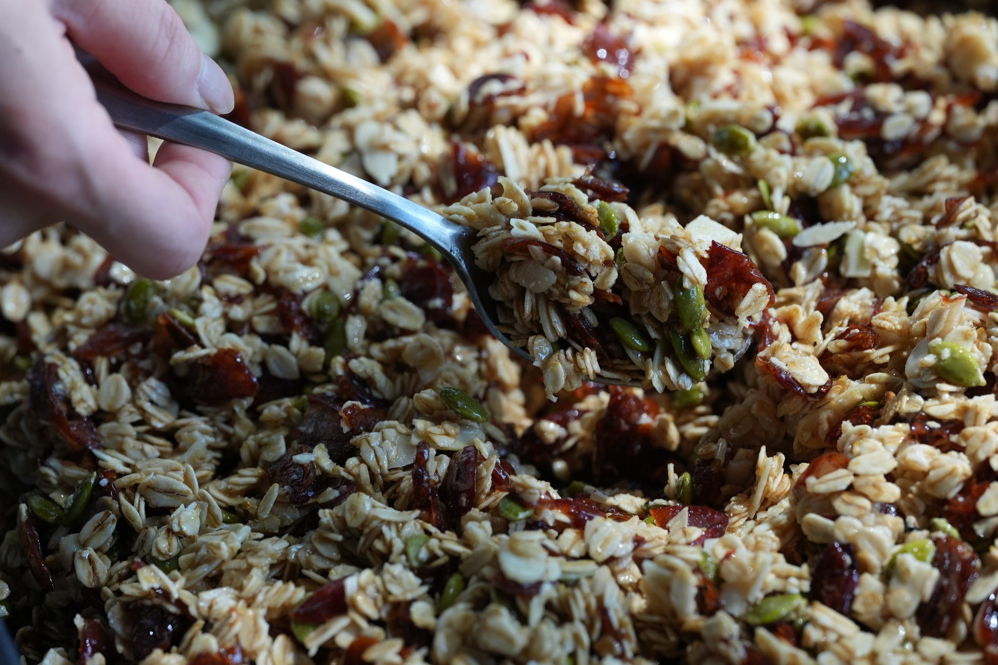 オーツ麦や、アーモンドと混ぜて、香ばしく焼き上げて作りました。